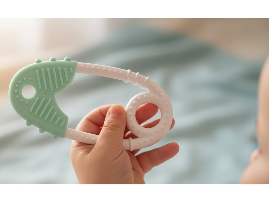 🍼 Silikonové kousátko – šetrné k dásním, ideální při prořezávání zoubků, snadno se drží v malých ručičkách.