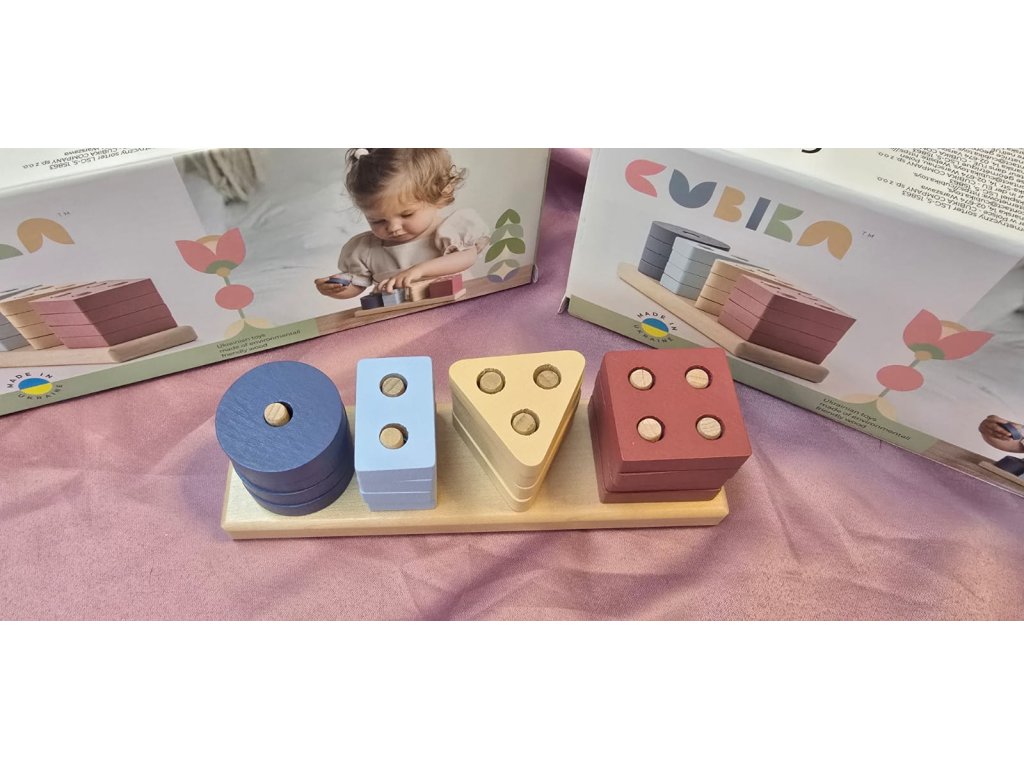 Dřevěný geometrický tvarový sorter Cubika 16 dílků
