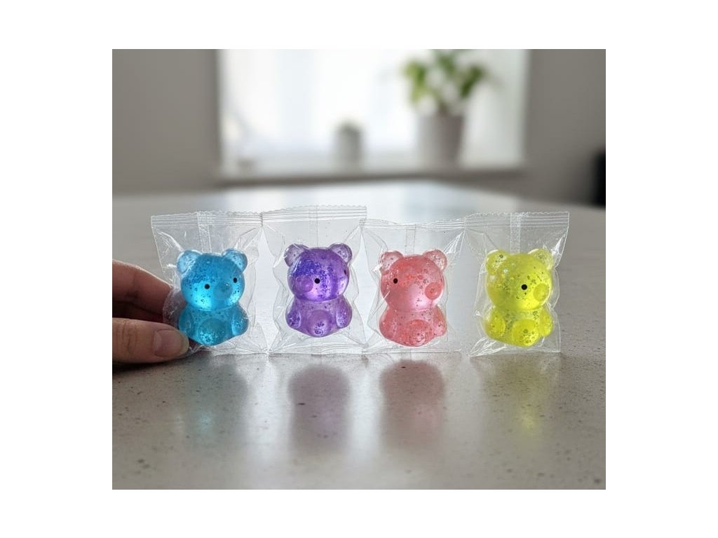 Roztomilý mačkací medvídek se třpytkami je kapesní parťák pro malé i větší ruce. Díky velikosti cca 5 cm perfektně padne do dlaně, příjemně se mačká a po stlačení se vrací do původního tvaru.