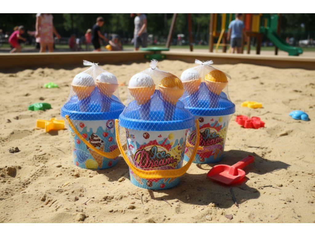 Velká sada na písek s kyblíkem 28 cm (5 ks) je ideální letní hračka pro děti od 12 měsíců. Praktické balení v síťce na pláž, zahradu i pískoviště.